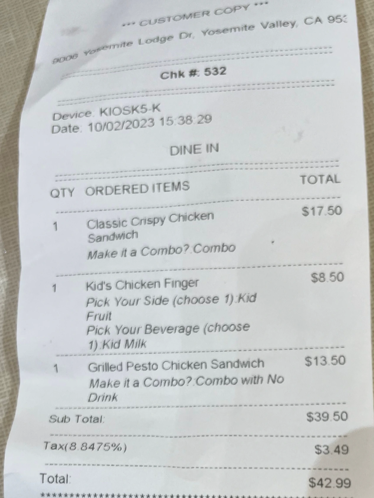 어린 엘리도 데려가야 하는 여행이니만큼, 기왕 가는 거 조금이라도 편하게 가고 싶었다. 그래서 선택한 숙소가 바로 요세미티 밸리 랏지. 1박에 289달러. 비수기라 그나마 이 정도다. 성수기였으면 $400은 거뜬히 넘었을 거다.