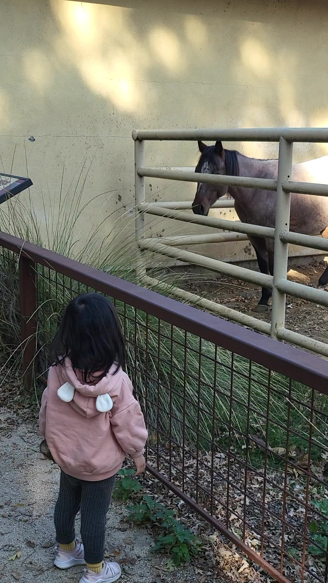 "엄마! 여기에 말 있어! 봐봐!"