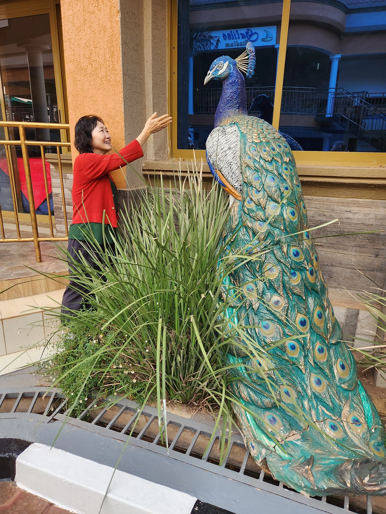 박물관 투어를 끝내고 주변을 돌고 있는데 막 공연을 끝내고 마무리 작업을 하는 전통춤 공연팀을 만났다. 시간이 맞지 않아 그들이 하는 공연은 보지 못했지만 아쉬움을 남기며 남편이 이렇게라도 한 컷 찍는다. 그들이 입혀 주는 대로 걸쳐주는 대로 찰칵~!!! 생각보다 너무 멋진 사진이다. 굵직굵직한 윤곽이 지금 추장을 해도 하나도 어색하지 않을 정도로 찰떡처럼 잘 어울린다. 저 넉넉한 웃음에서 후예의 추장 같은 특별한 기세가 느껴지지 않는가!^^