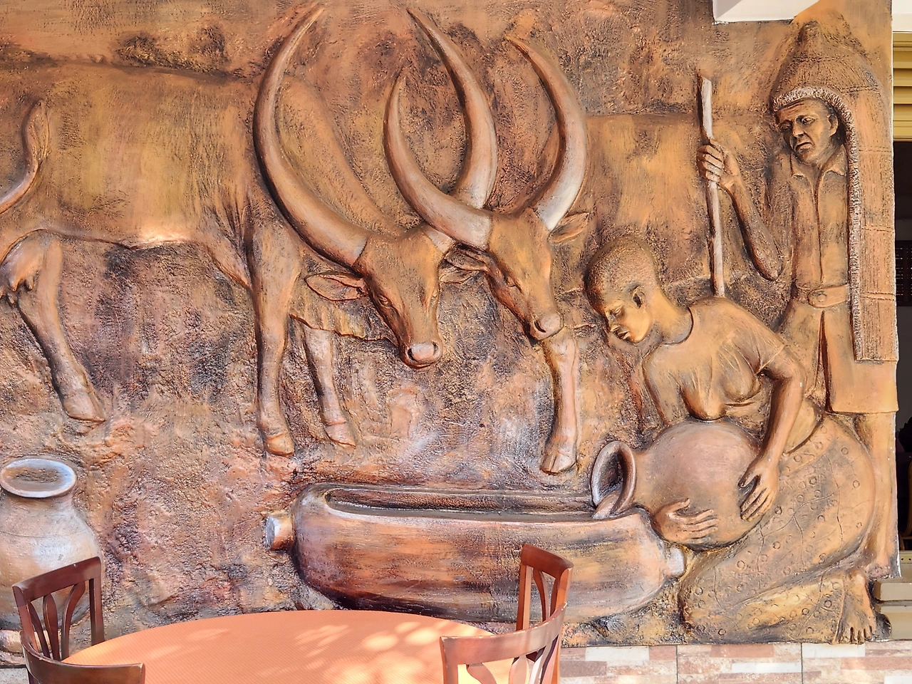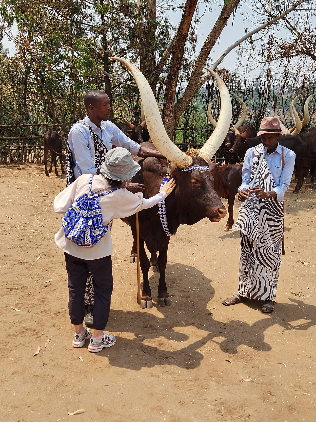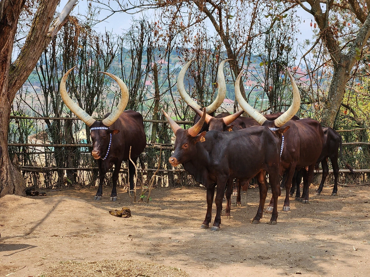 이렇게 멋진 뿔을 가진 소가 있을까~!!! 사진보다 실물로 보면 이들의 모습이 예사롭지 않음을 느낄 수 있다. 왕실 소 (King's Cattle)로 알려진 이내 암보(lnyambo)를 키우는 왕궁의 뒤꼍이다. 아름답게 뻗은 긴 뿔, 걸음걸이조차 우아하게 걷는다. 십여 마리의 소들은 모두 한 가족이라고 한다. 그래서 싸움도 없고 위계질서가 잘 서있단다. 소를 만져도 괜찮다고 해서 손을 뻗긴 했는데 너무 조심스럽다. 겁이 많은 통에 엉덩이를 뒤로 빼고 조심스레 다가갔는데 정작 소는 자기 자리를 지키며 위엄 있게 서 있다. 역시 왕궁의 소답다.
