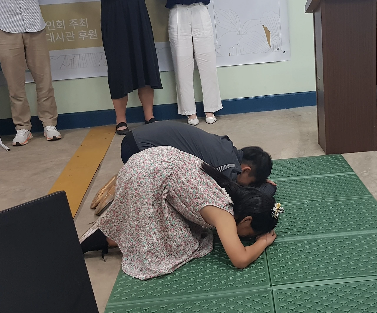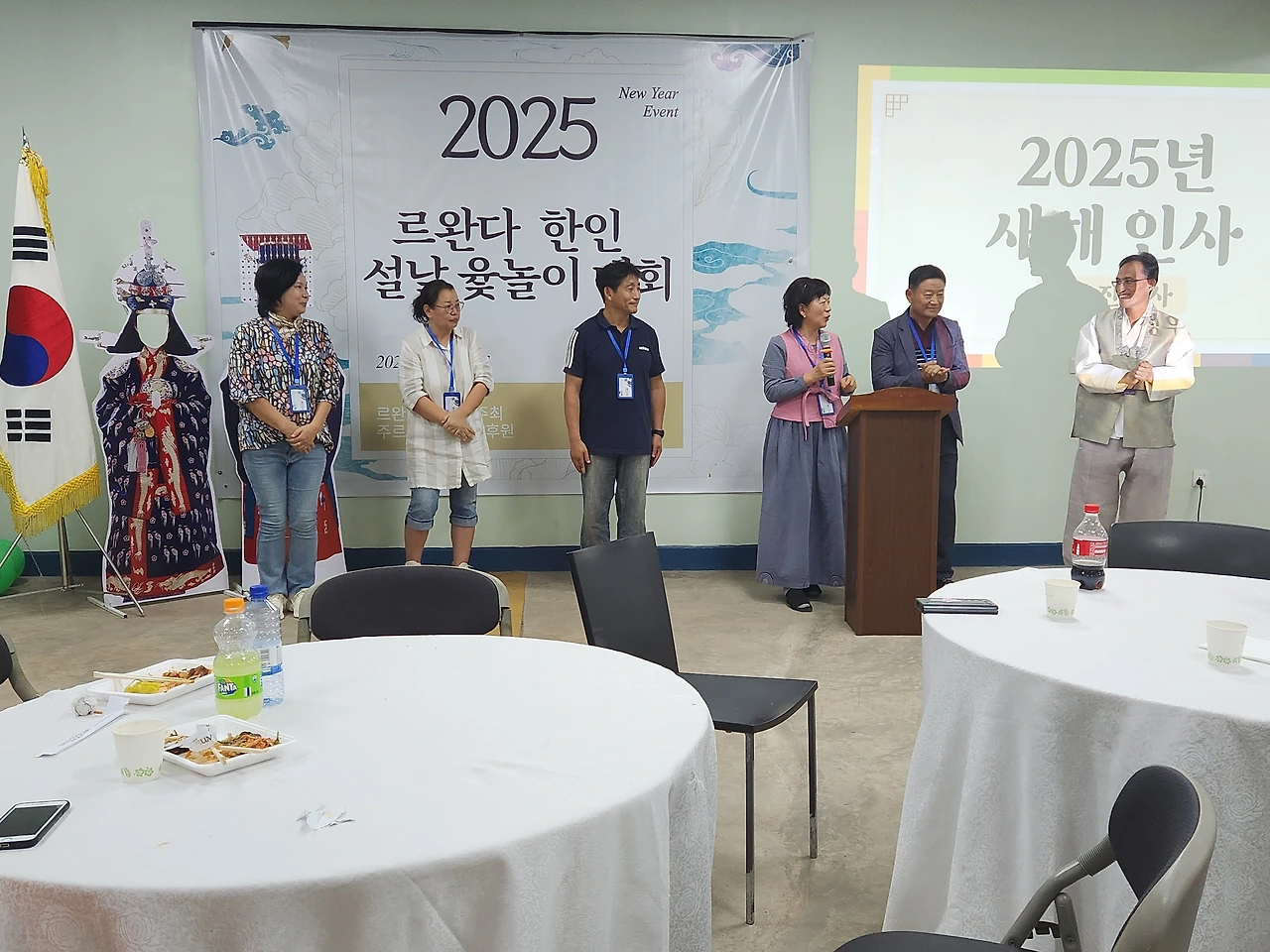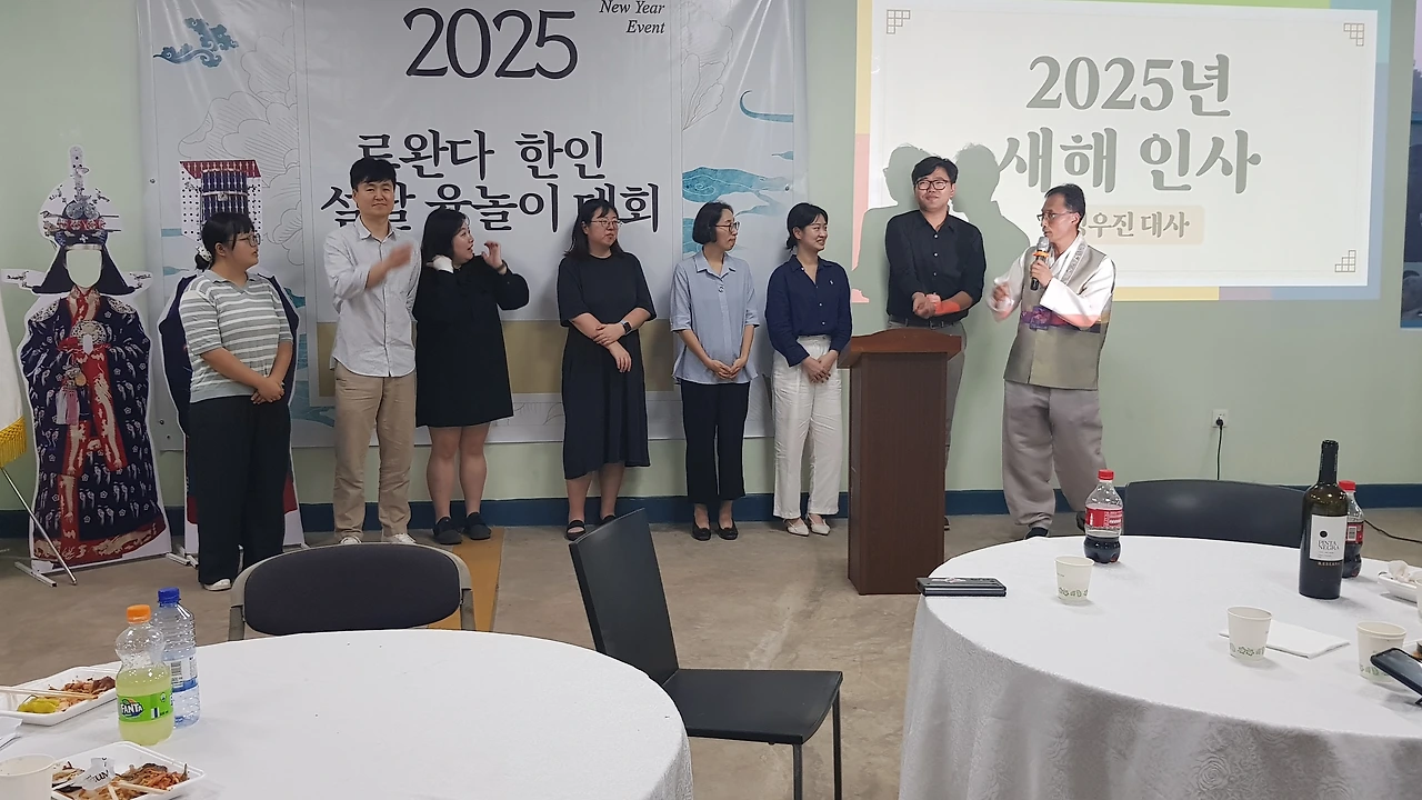행사의 마무리는 시상이다. 윷놀이 대회를 오면서 사실 우리 팀이 일등을 하는 상상도 해봤다. "심바 상품권 십만 프랑을 받으면 무얼 할까?" 하고 잠시라도 즐거웠다. 시상에 든 팀이 은근히 부럽다. 대중의 환호 속에 시상식에 나와 상을 받아 가는 팀의 주장들은 어깨가 으쓱해 보인다. 비가 자주 오는 르완다에 딱 맞는 우산을 상품권과 함께 덤으로 주다니. 어떻게 이렇게 유용한 생각을 했을까^^ 어느덧 설날 행사장은 오후로 기울어가고 있다. 올해도 정우진 르완다 대사님은 아이들에게 한국의 전통예절을 가르쳤다. 한인회 회장님과 코이카 소장님도 함께 자리했다. 대사님이 맨바닥에 털썩 자리하자 청년들이 얼른 매트를 깔아주는 센스가 돋보였다. 갑자기 불려 나온 아이들은 처음에 부끄러웠는지 잠시 망설이는가 싶더니 이내 무릎을 꿇고 넙죽 절을 한다. 대사님은 격려의 글을 적은 봉투를 아이들에게 건넸다. 그리고 모인 교민 모두가 홀이 꽉 차도록 목소리를 높여 아이들과 함께 설날 동요를 불렀다.
