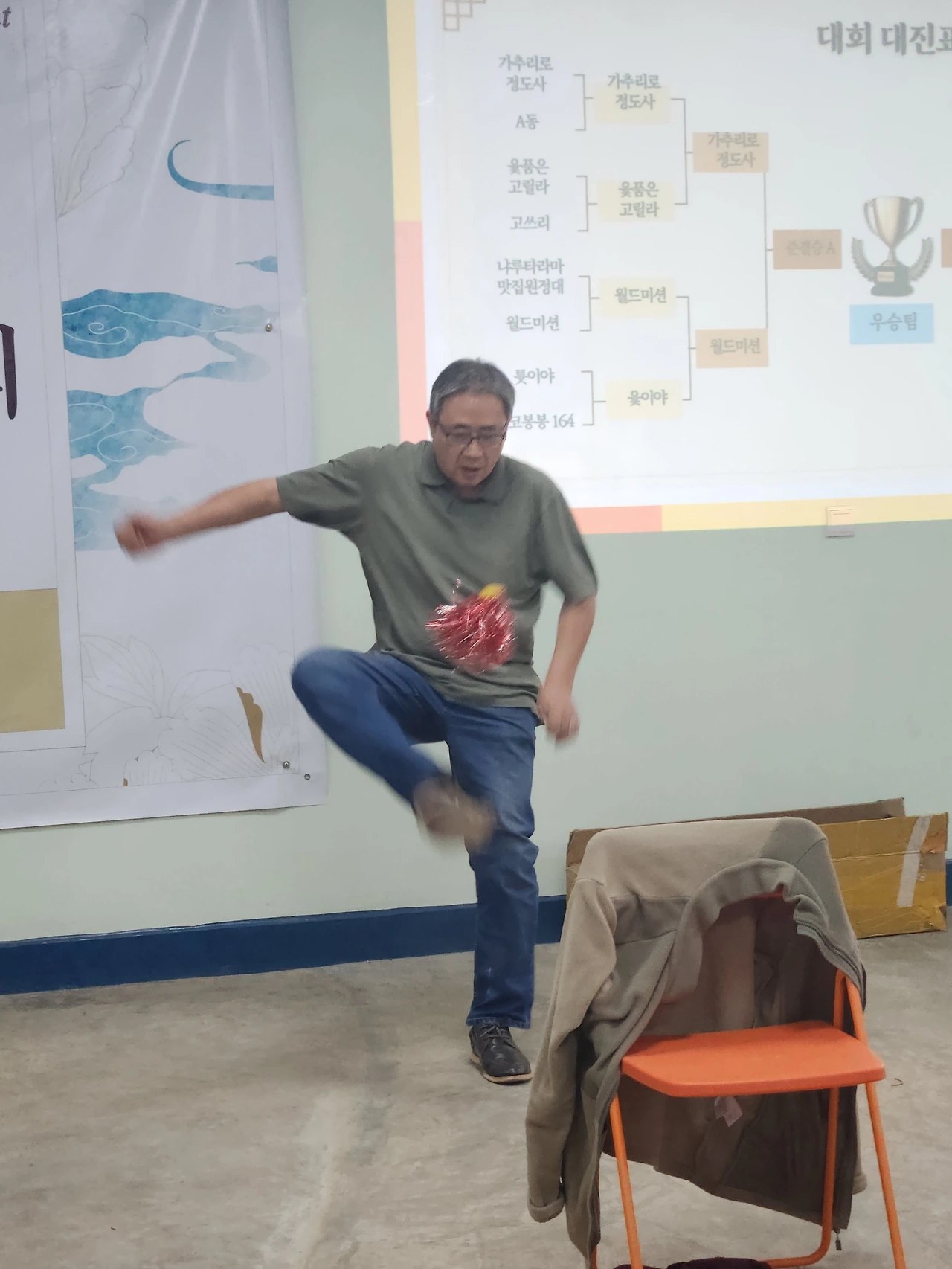 모두 16팀이 신청을 했다. 묻고 더불로 가, 모나와라, 개코봉, 룻이야, 나루타라마 맛집 원정대, 굿쓰리, 윷품은 고릴라, 호랑이, 월드미션등... 이름도 참 재미있게 지었다. 넓은 홀에는 8개의 윷판이 펼쳐졌다. 여기저기 함성이 들리며 후끈한 열기가 감도는 행사장. 남편과 나 그리고 황상일 선교사님 부부는 한 팀으로 호랑이팀이다. 여호와의 사랑에서 글자를 따와서 만들었는데 그 이름만큼 오늘 실력 발휘를 할 수 있을까! 작년 이맘때 남편을 비롯한 자문관 두 분과 함께 코릴라라는 팀을 만들어서 끝내 승리를 거머쥐었었다. 그 기분이 얼마나 짜릿했는지 경험해 본 사람만이 알 수 있다.