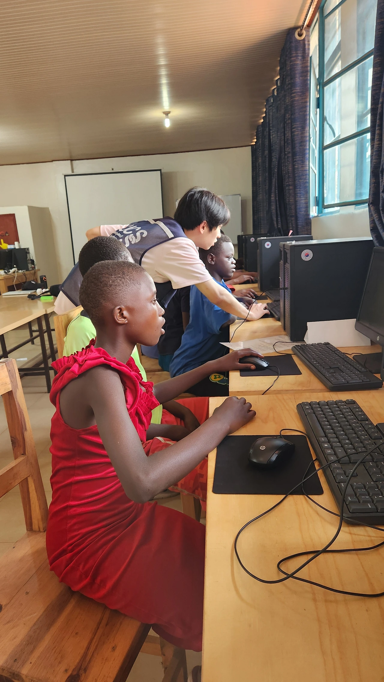 음악, 컴퓨터, 미술, 체육 각 분과별로 활동이 한창 진행되고 있었다. 르완다 현지 학생 1명과 대사협 봉사단 4명이 1조가 되어 움직이고 있다고 한다. 음악교실에서는 장구와, 재활용 페트병을 이용해서 흔드는 악기를 만들고 있다. 내가 폰을 가져다 대자 너도 나도 라디오에서 나오는 음악에 맞춰 악기를 흔든다. 흥이 많은 르완다 아이들에게 더없이 좋은 시간일 것 같다.