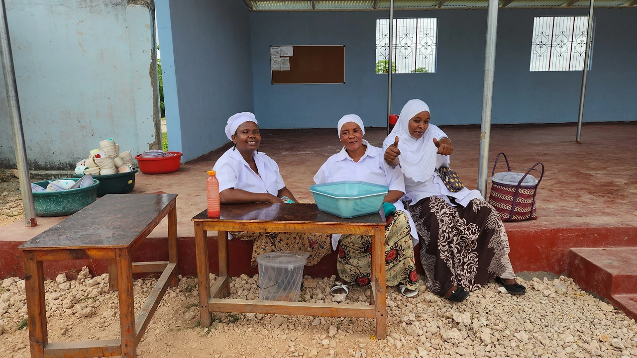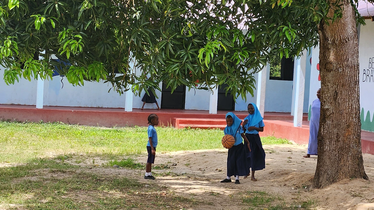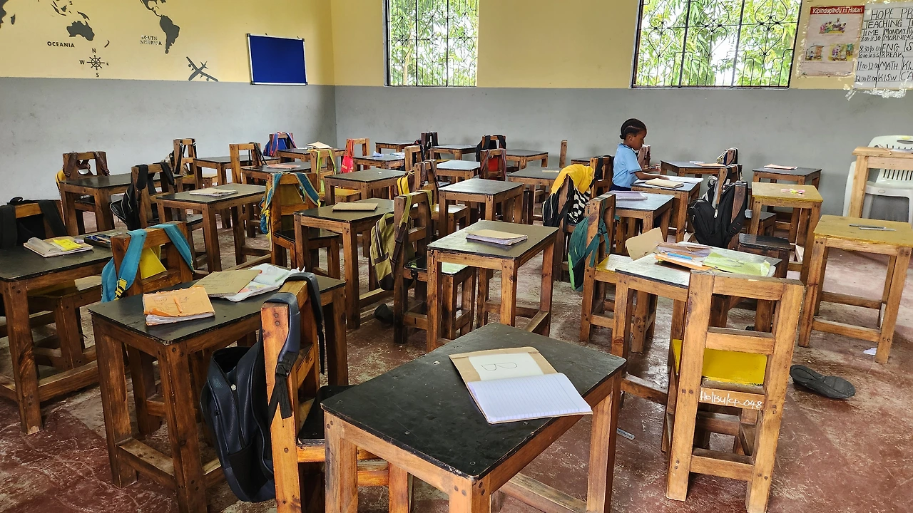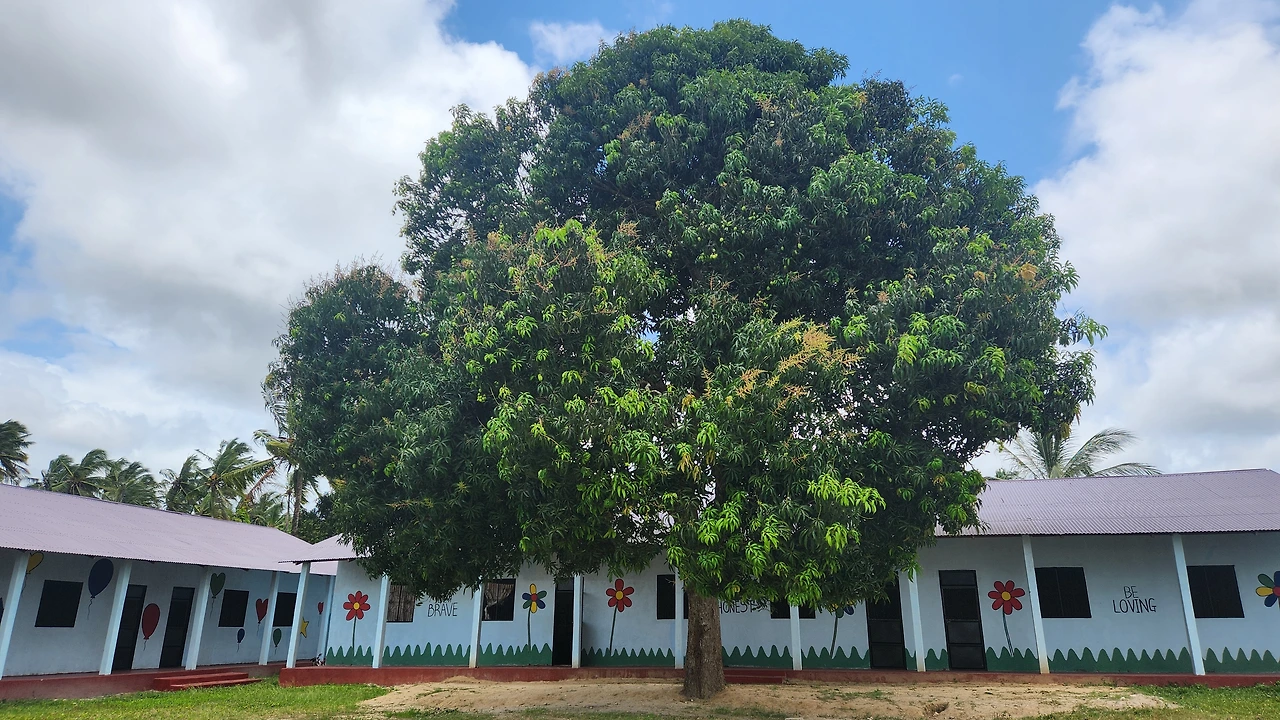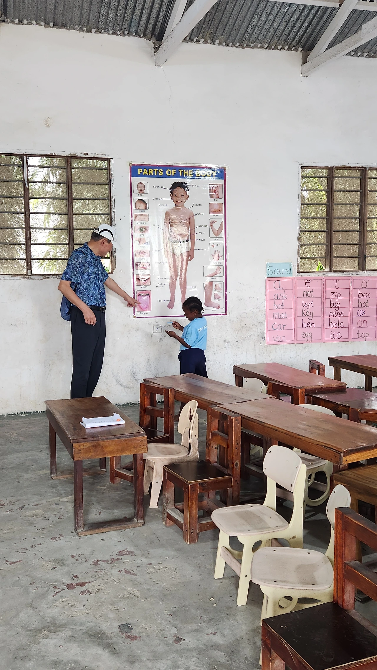 오경신 선교사의 안내로 호프스쿨을 방문했다. 파파야 나무가 줄지어 선 정겨운 시골마을을 지났다. 살짝 검은 구름이 끼긴 했지만 다행히 방문하는 동안 비는 내리지 않았다. 우리가 학교에 도착했을 때는 많은 아이들이 운동장에서 뛰어놀고 있었다. 간식시간이란다. 학교에서는 간식으로 우지(선식을 끓인 것)를 지급하고 있는데, 학부모들이 판매하는 빵을 사 먹기도 한다. 세 명의 학부모가 빈 간식 통 앞에 앉아있다.