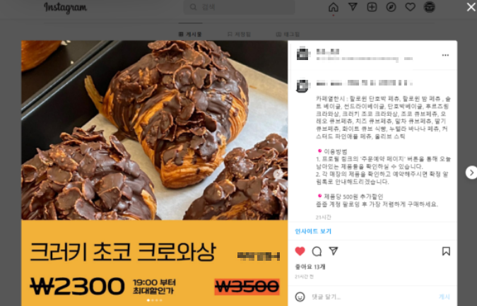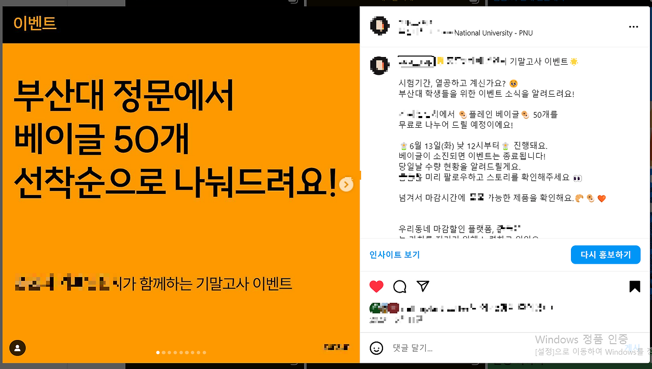 인스타그램 게시글, 스폰서마케팅, 매장 외부에 현수막 비치를 통해서 홍보를 진행하였음