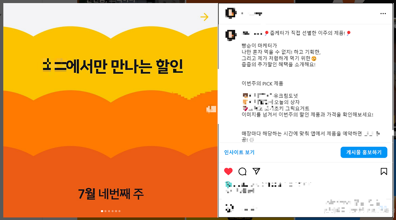 설명 : 매장에서 진행되는 특정 상황들을 기반으로 추가 할인을 진행하였으며, 온라인 홍보채널을 활용하여 홍보를 진행하였음