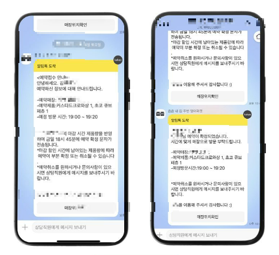 주문이 들어오면 알림을 받아 직접 카카오 알림톡을 보내는 형식으로 진행