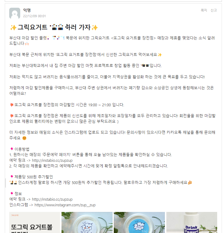 사장님이 직접 할인을 진행하도록 유도하였다면 지속가능한 이벤트가 될 수 있었을 거라 생각함