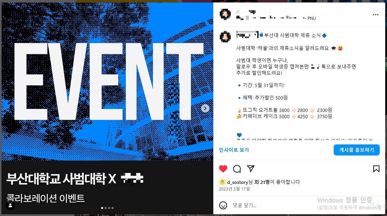 설명 : 특정 커뮤니티, 소속감을 가진 집단들과 연계하여 추가적인 할인을 제공하는 이벤트를 진행함
