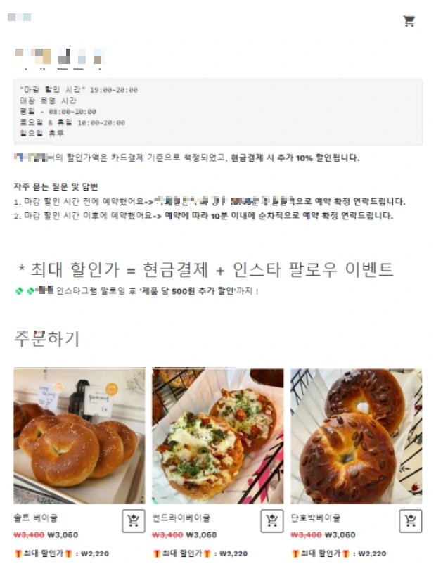 매장에서 자체로 마감할인 진행하는 할인률은 15~25% 정도로 책정되어 있었음