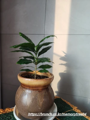커피 열매가 열리고 그 열매를 따서 다시 싹을 틔워서 주변인들에게 나눔을 해주셨다.