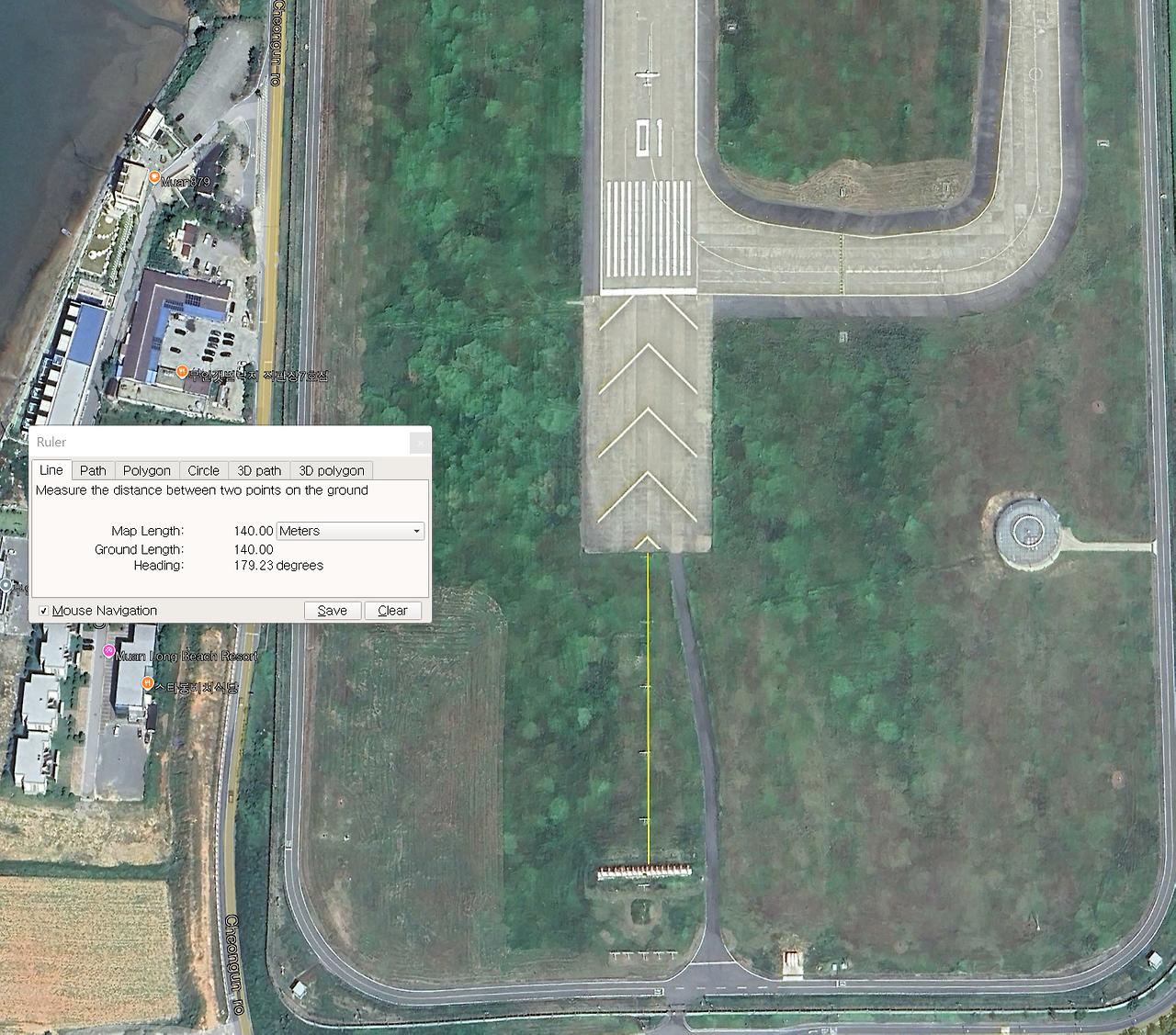 구글지도로 살펴본 (그림 1)의 무안공항의 경우 갈매기(V자)로 표시된 부분이 정지로(stopway)로 보이며, 지도상 측정된 길이는 약 120m이다. 그리고 정지로의 끝에서 localizer까지의 거리는 140m정도 된다. 그 140m에서 착륙대 60m를 제외하면 80m가 남는데, 이는 설치기준 제21조 1항에서 요구하는 종단안전구역의 최소길이 90m에도 못 미치는 것으로 나타나 면밀한 확인이 필요하다.