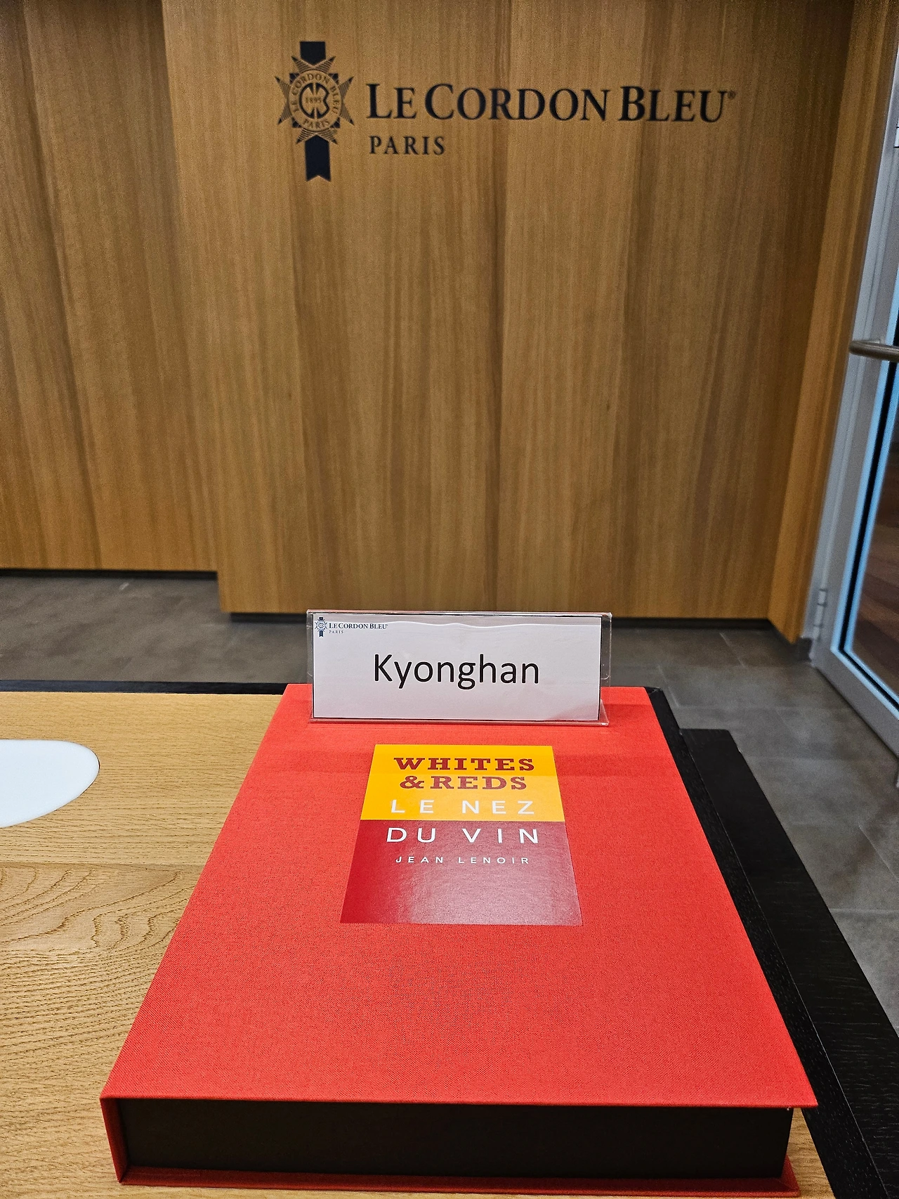 1시간 반 정도 강의를 마치고 나서 자기가 제일 좋아하는 시간이라며 와인 두 병을 꺼낸다. 잔을 들고 모두 둘러서서 서로 소개부터. 앰플에 있는 향을 맡고 와인을 마시며 여러 이야기를 나누었다. 남자와 여자의 차이, 유전적으로 특정향을 못 맡는 사람들, 시각에 의한 방해(화이트 와인에 향이 없는 빨간 색소를 넣으면 전문가들도 다른 향을 적어 낸다고) 등.