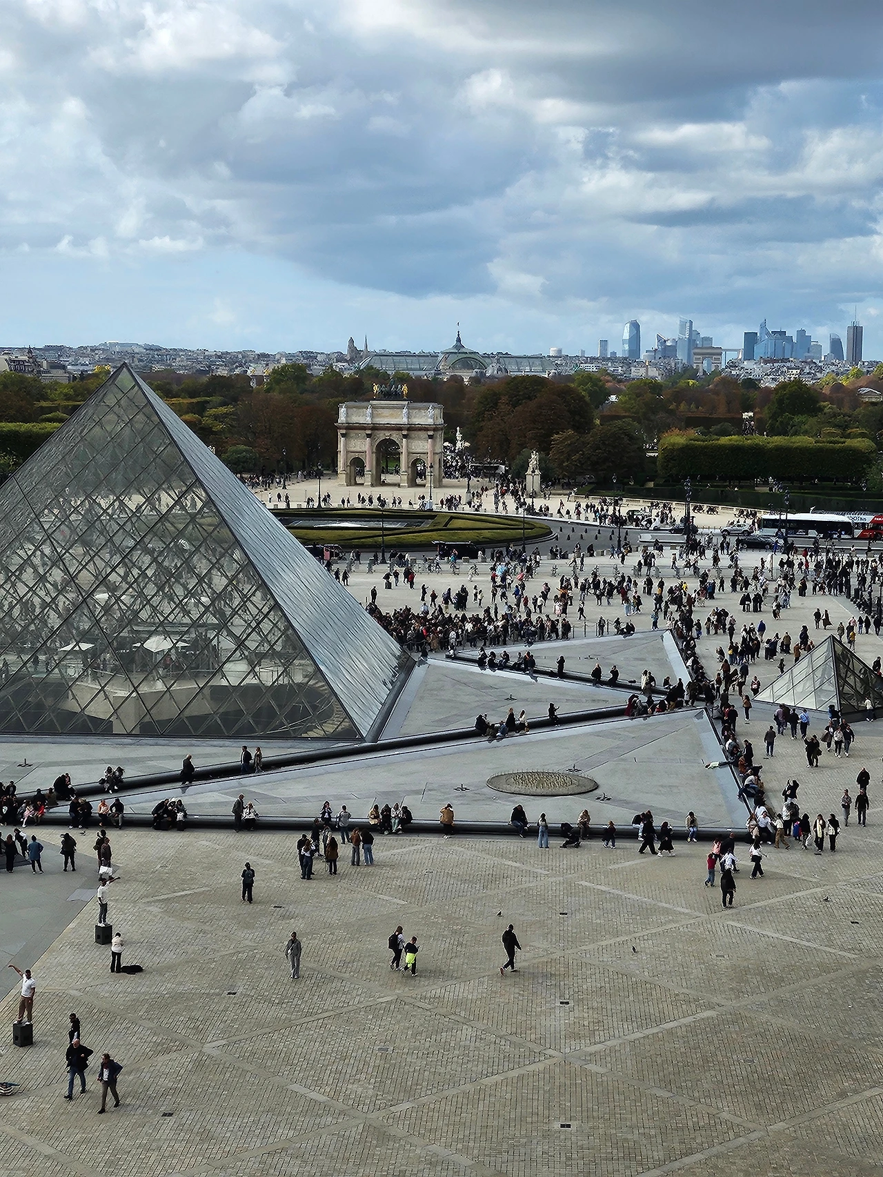 사실 내가 좋아하는 이유는 다른 것이다. 여기 창문에 서면 일직선으로 연결된 루브르 피라미드와 세 개의 개선문(카루젤 개선문, 샹젤리제 개선문, 라데팡스의 신 개선문)이 한눈에 들어온다. 이집트와 로마, 나폴레옹 시대를 거쳐 현대로 이어지는 것. 1달 동안 10번 루브르에 가서 발견한, 나만의 포토 스폿이다.