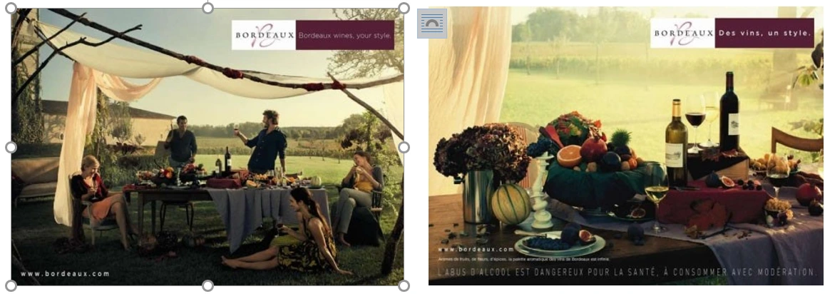 프랑스 와인 회사들의 외국에서의 광고와 자국 내 광고를 비교해 보면 더 재미있다.