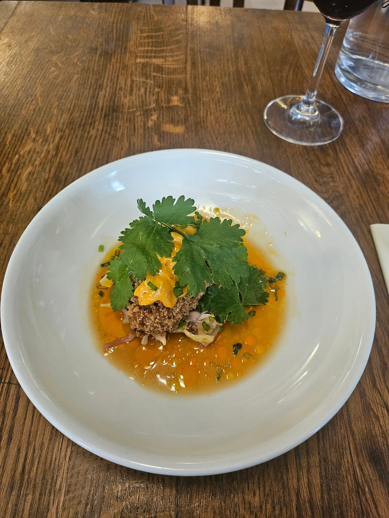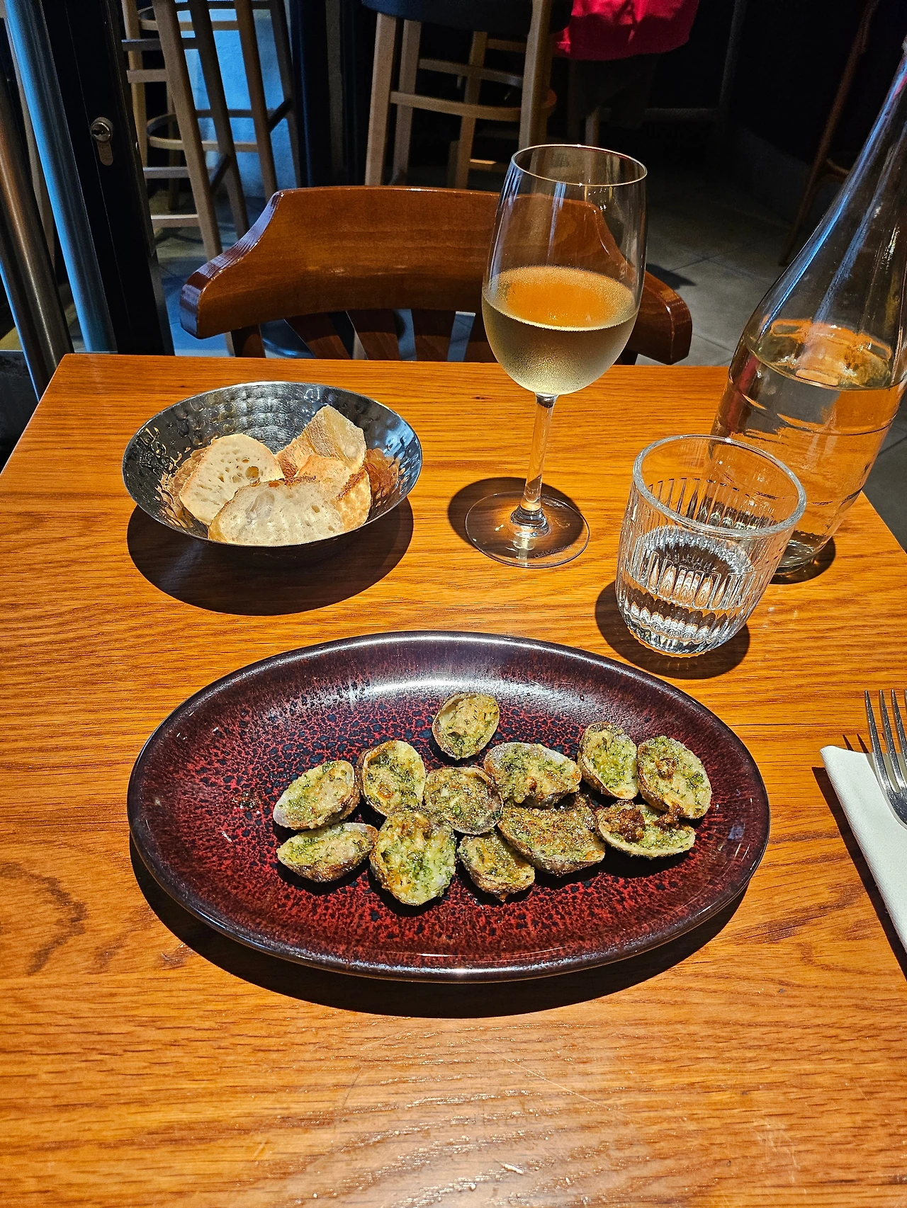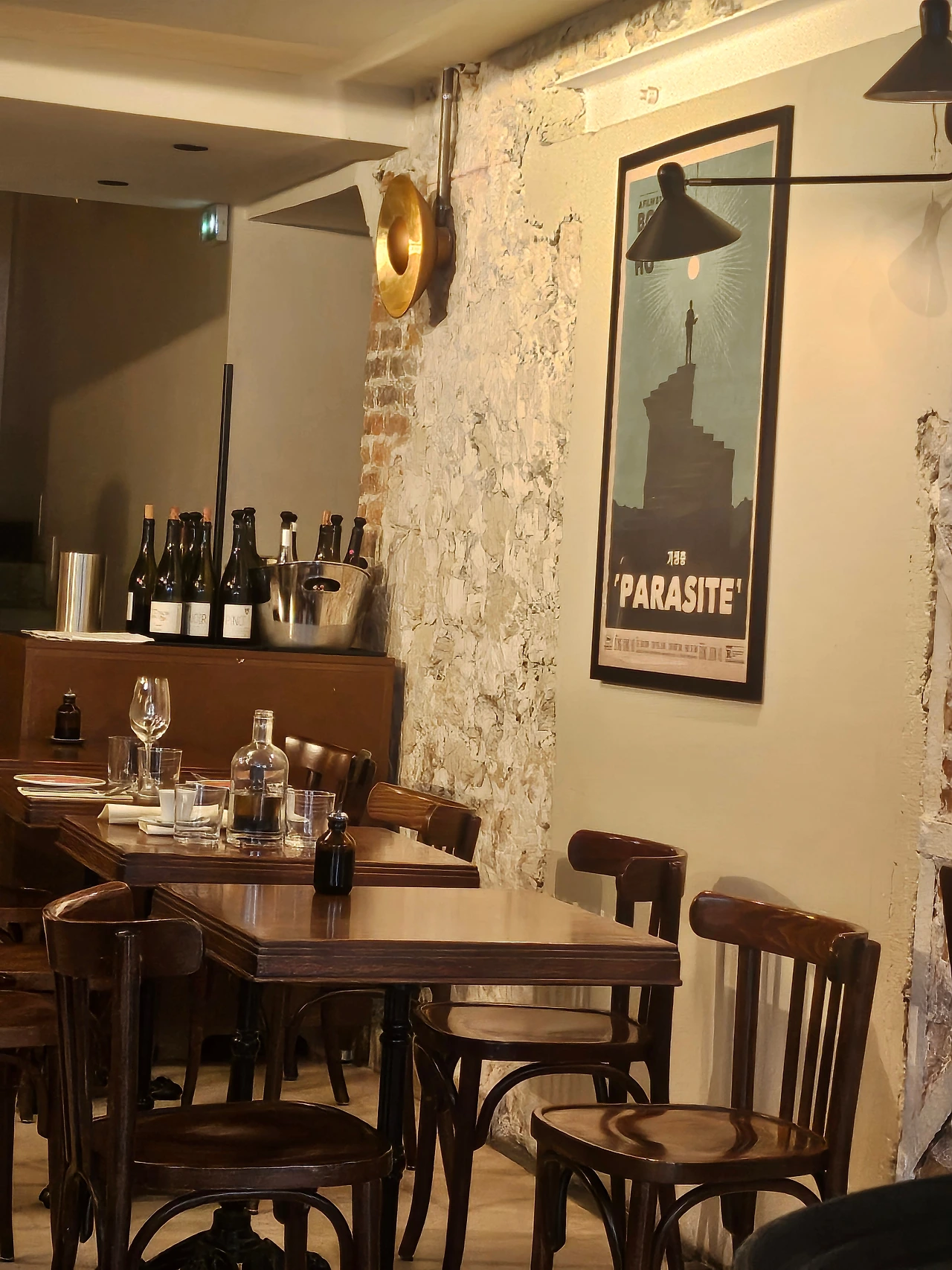 미슐랭인데 기본 빵을 주지 않는 것도 특이했고, 서비스 역시 동양 퓨전이다. 포크와 칼은 계속 써야 하고 계산은 카운터에서. 아주 관광객 친화적인데 여기 다녀와서 미슐랭 체험이라 할 수 있나 하는 생각이 든다. 식당 벽에 영화 기생충 포스터가 걸려 있는 건 아주 마음에 들었다.