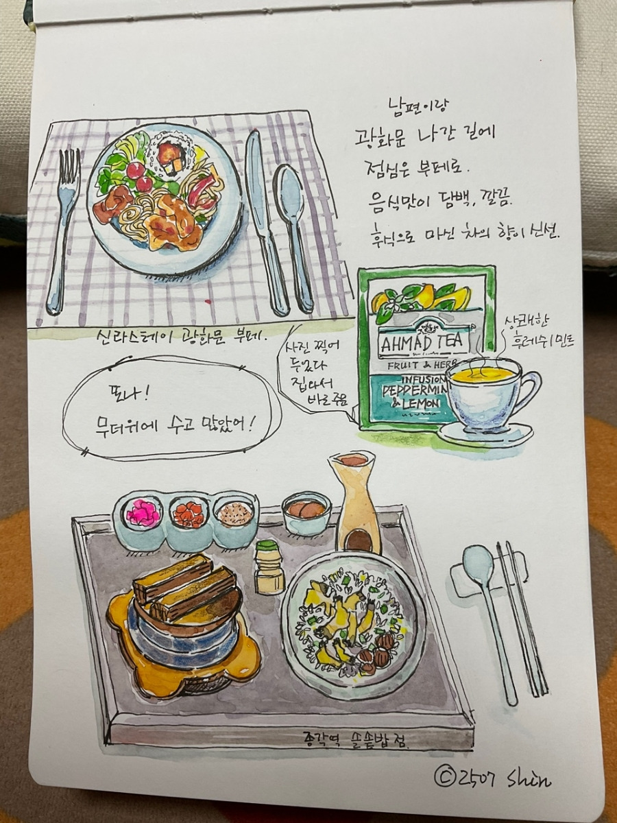 며칠 전 한껏 땡땡이친 날의 맛있는 음식을 그려 본다.