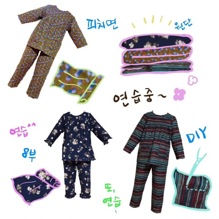직선 박기 정도를 배우고 나서 만든 수제 파자마!