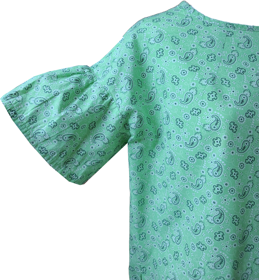 작고 귀여운 페이즐리 무늬 형태의 패턴 코튼 원단으로 일상복 투피스를 만들었다.