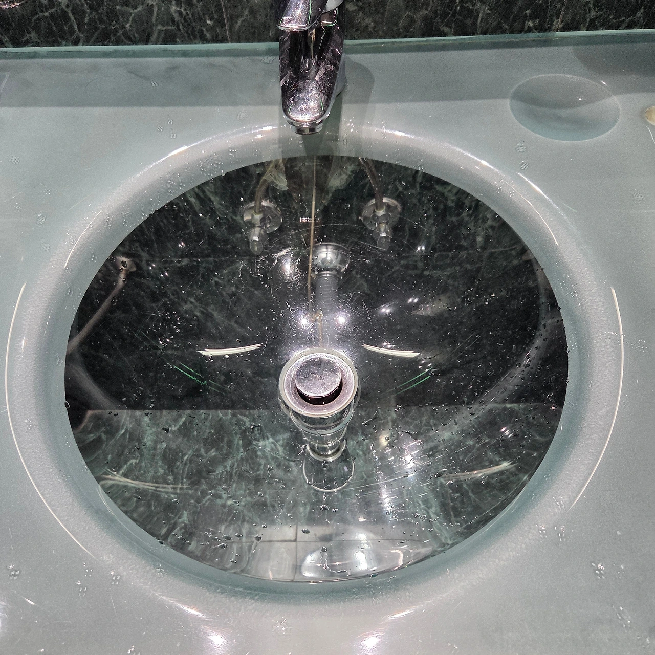 아침에 세수를 하면서 보니, 세면대가 투명하다. 바닥이 휑한 것이 왠지 낯설다.