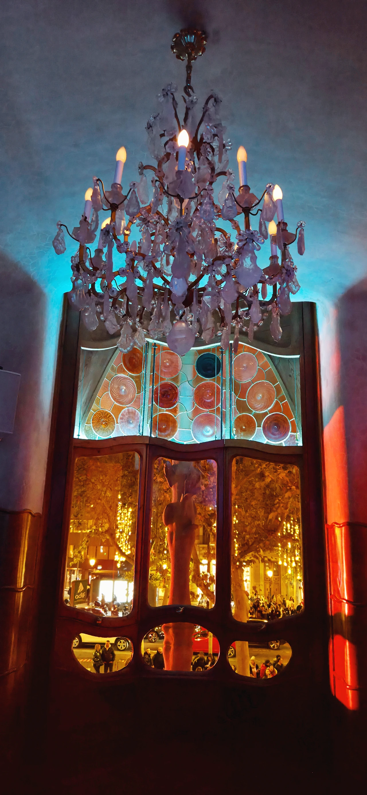 작은 건물 한 동이지만, 꼼꼼히 보다 보면 가우디의 작품세계가 독특하다는 느낌을 받는다. 일반적인 건축의 직선이나 면들을 사용하지 않기 때문이다. 까사바트요는 모든 선이 곡선이다. 굉장히 힘들고, 어려운 작업이었을 텐데... 드나드는 문, 창문, 의자, 가구는 물론, 심지어 손잡이같이, 작고 세밀한 부분에서 가우디의 신앙과 섬세함, 정체성이 느껴진다.