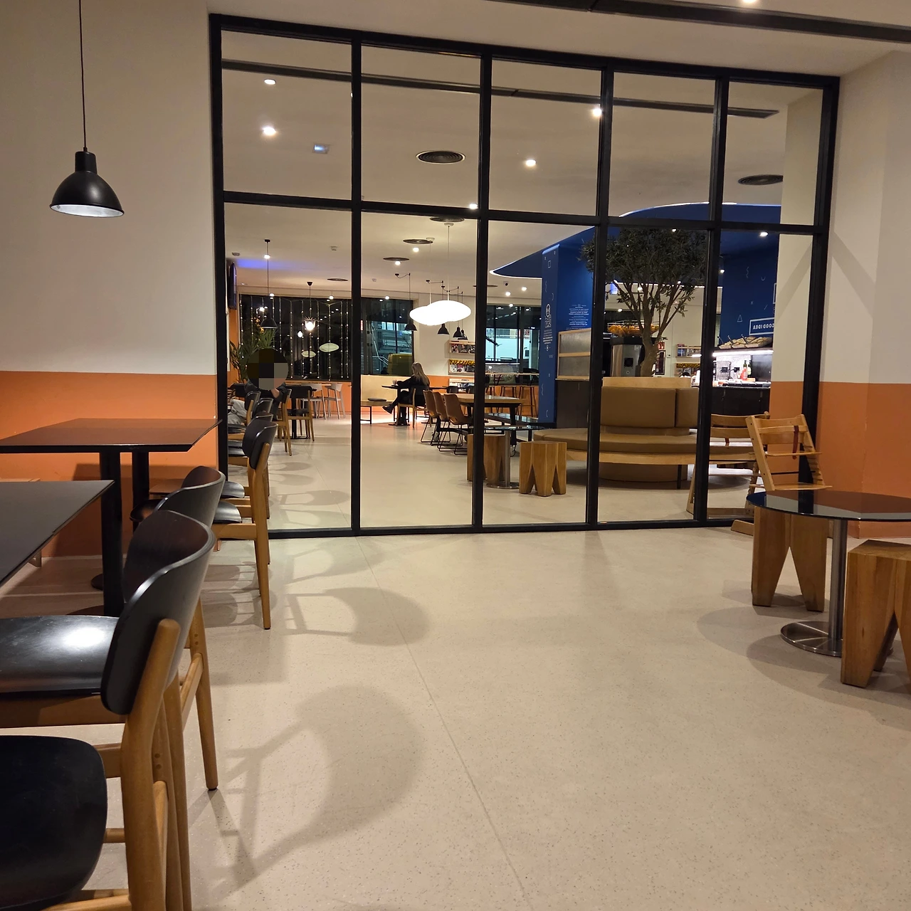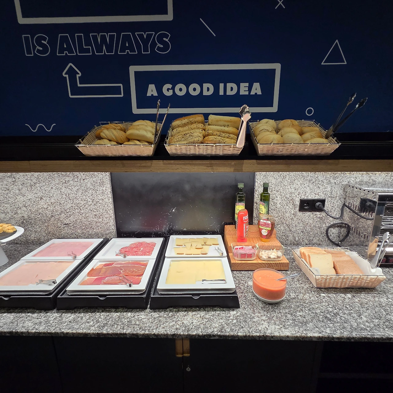 메뉴의 대부분은 빵과 음료, 치즈, 하몽, 스크램블, 요거트 과일 등이다.