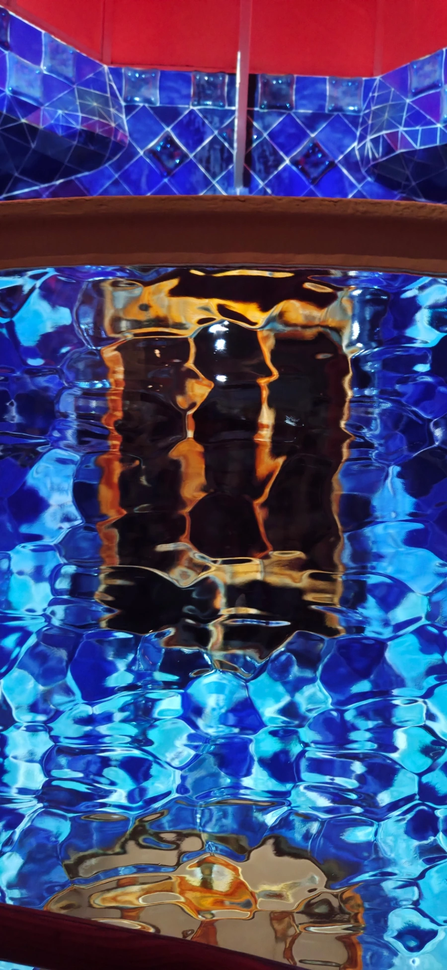 환기를 담당하는 건물 안 중정이 인상 깊다. 푸른 타일로 위아래 그러데이션을 주어, 빛의 채광량이 고르게 분산되도록 한 구상도 놀랍다. 그리고, 이 공간을 마치 물속처럼 보이도록, 아쿠아 유리 같은 걸로 만들어서, 그 느낌을 구현했다. 건물이 살아 있는 느낌이랄까.. 바닷속이 아닌데, 바닷속 같은 느낌. 가우디의 심오한 작품 세계로 들어가는 순간이었다.