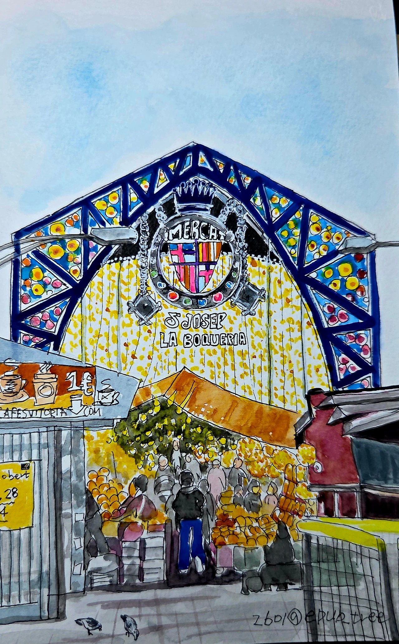시장은 8:00~20:30분까지인데 일요일은 휴무다. 그라시아거리를 지나, 카탈루나 광장에서 람블라스거리 방향으로 6~7분 걸으면, 오른쪽으로 보케리아 시장이 있다.