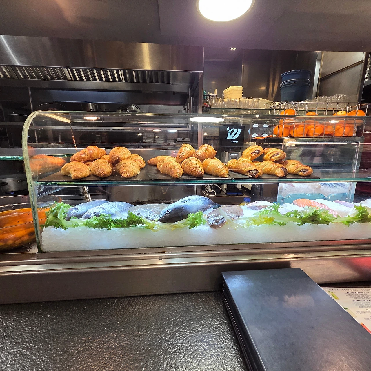 지나다 진열대에 있는 신선한 해산물이 눈에 띄어 들어온 앙코라(Ancora)
