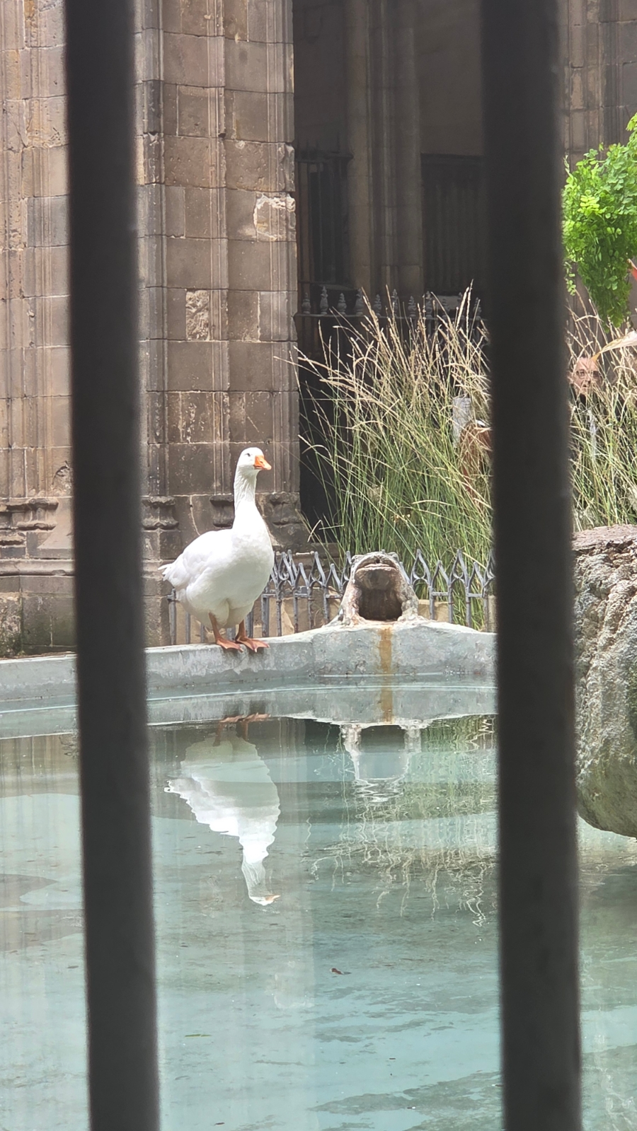 대성당 중정 회랑에는 13마리의 거위가 살고 있다. 수호성녀 에우랄리아가 순교당할 당시 13세였기 때문에, 이를 상징하기 위한 숫자이다. 오늘은 다 어디 가고 한 마리만 보인다.