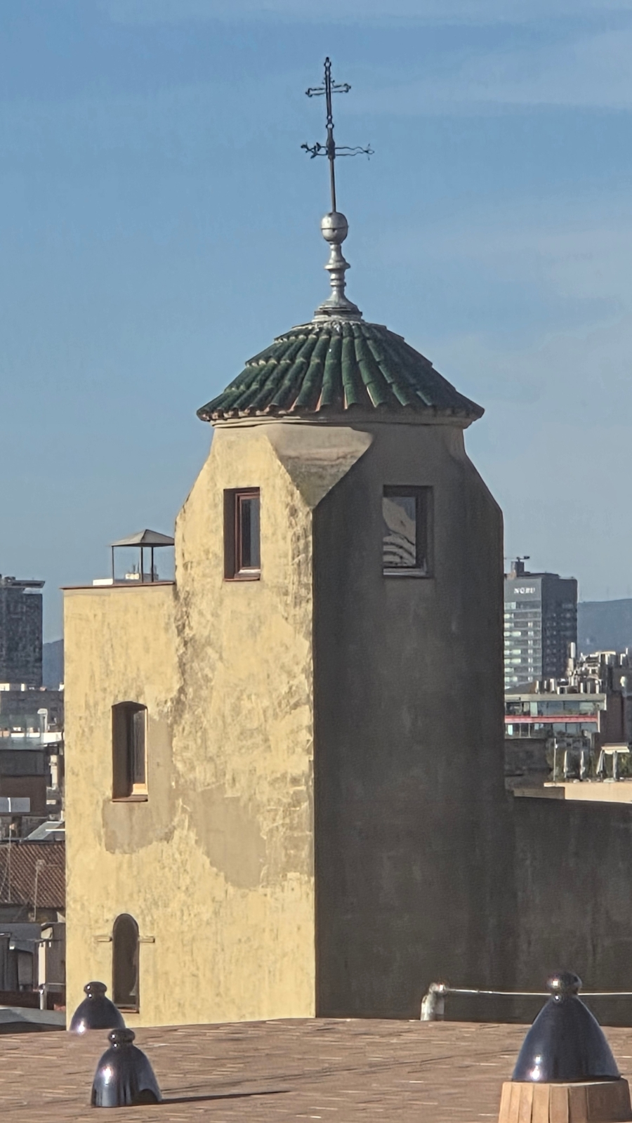 엘리베이터를 타고, 옥상 첨탑으로 올라가면 또 다른 세상이 펼쳐진다. 이곳, 옥상 첨탑에서는 고딕 지구와 바르셀로나 시내를 한눈에 전망할 수 있다.