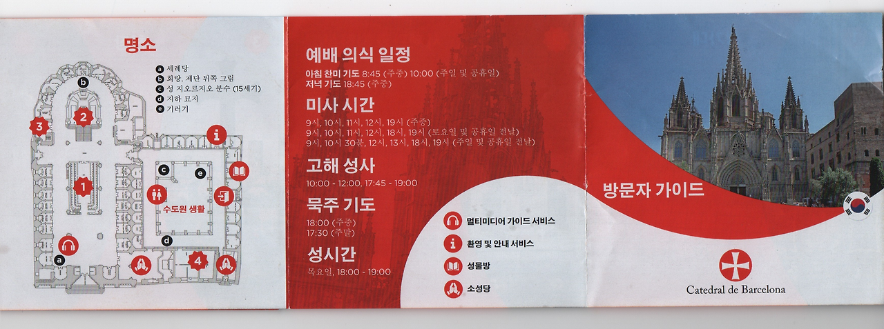 바르셀로나 대성당은 한국인이 정말 많이 오는 듯하다. 여기저기 반가운 한국말들이 자주 들린다. 심지어 방문자 가이드칸에 한국어본도 비치되어 있다.