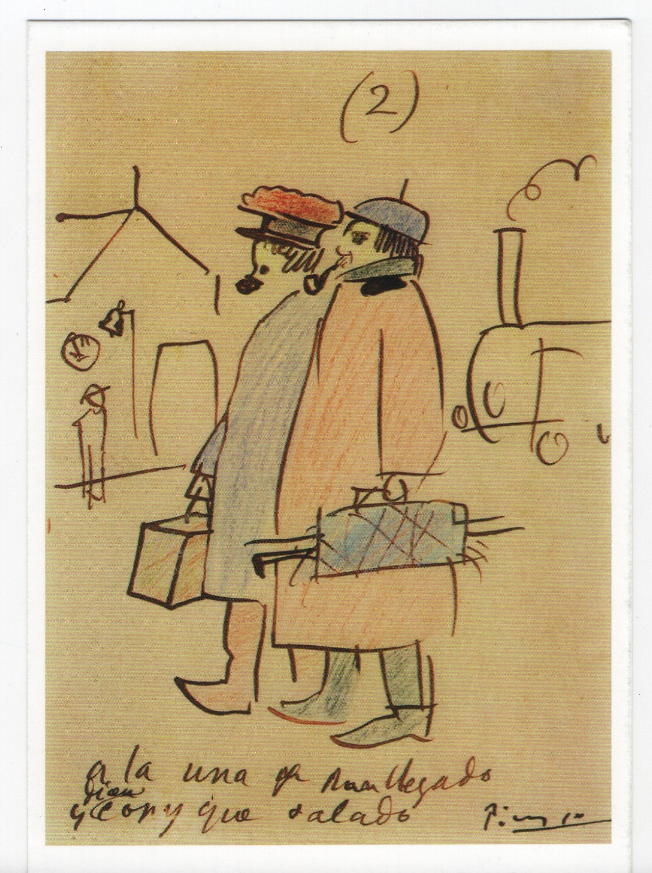 여행을 떠나는 두 사람을 심플하고 익살스럽게 그린 피카소의 엽서를 샀다.