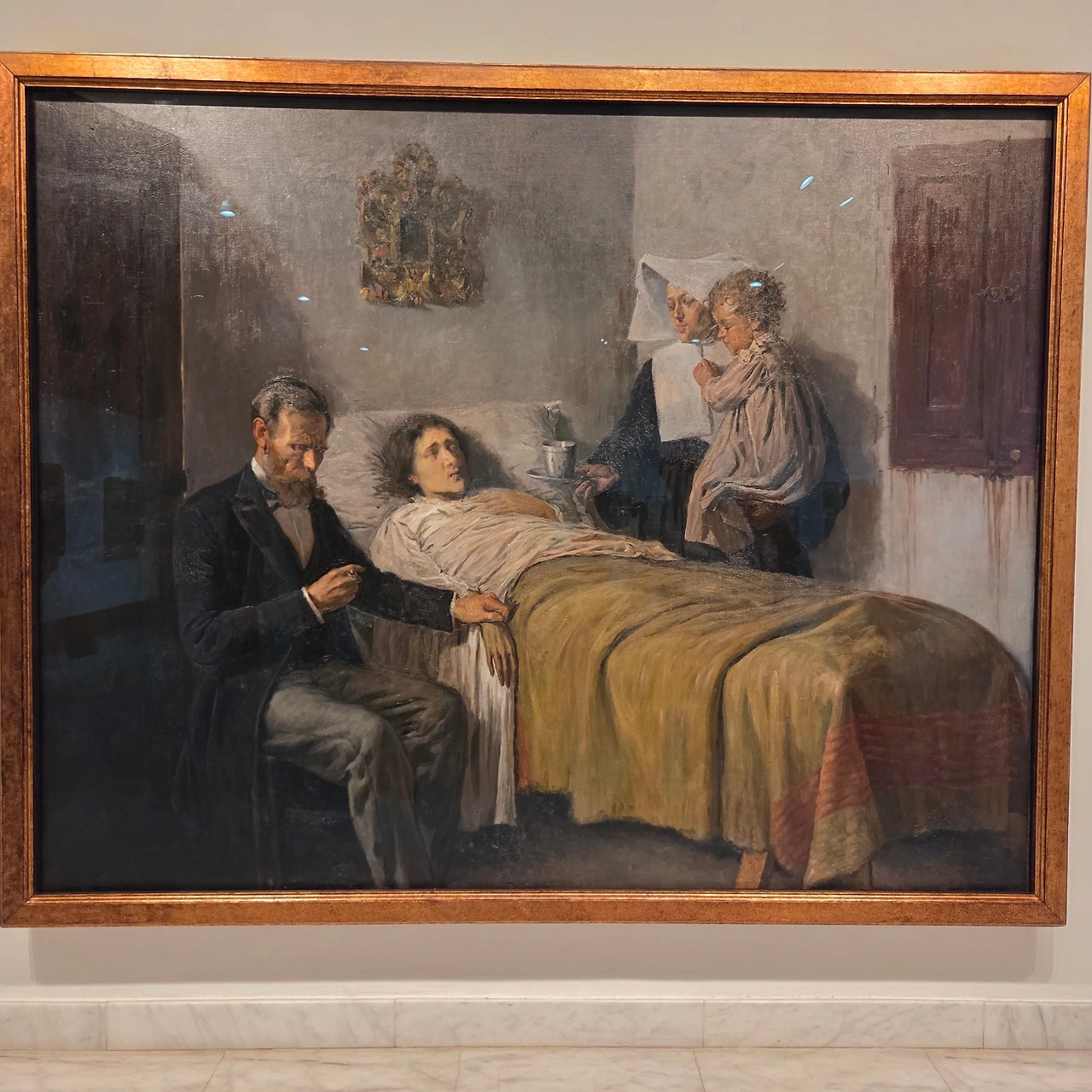 또 다른 작품인 '과학과 자비' 또한 대표적인 사실주의 작품이다. 병든 여인을 의사와 수녀가 돌보는 장면을 그린 그림인데, 이 또한 아카데믹한 전통을 따르는 화풍이 잘 드러나는 그림이다. 옷과 이불의 섬세한 주름과 명암 그리고 침울한 분위기가 반영된 벽의 색채가 말하고자 하는 주제를 나타내고 있다.