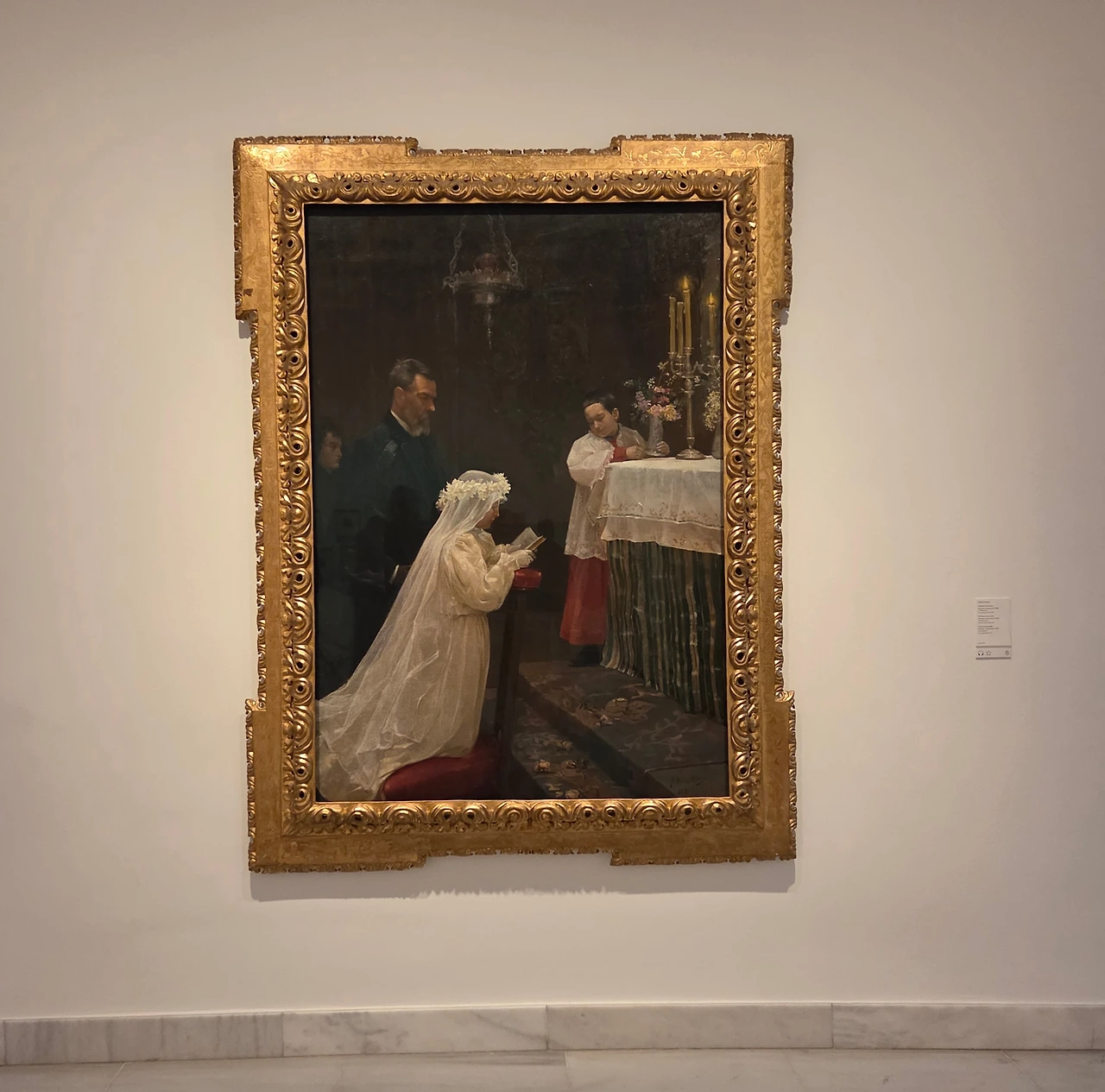 피카소가 14~15세에 그렸다는 '첫 영성체'(1896) 의식 장면은 어린 나이에 그렸다고 믿기 어려울 정도로 뛰어난 사실적 표현과 전통적인 학문적 화풍을 보여주는 대표작이다.