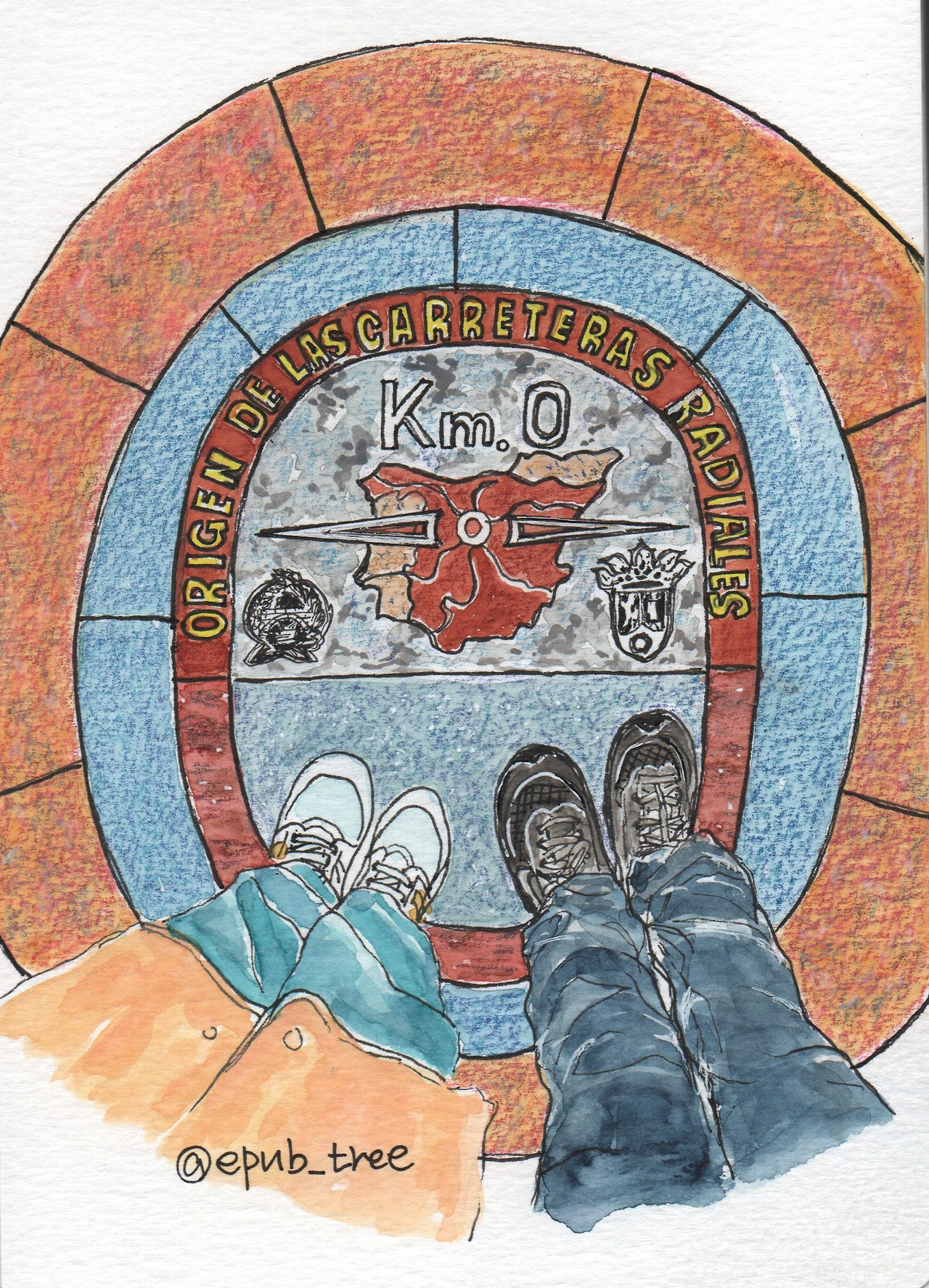 마드리드 여정의 시작점이 되는 곳 바로 '푸에르타 델 솔(Puerta del Sol)', 즉 '태양의 문'이라 불리는 광장이다. 이곳이 바로 스페인 전역으로 뻗어 나가는 6개 국도의 기점이 되는 '0km 지점'인 것이다. 현지인들 사이에서는 이 표지석을 밟으면 다시 마드리드로 돌아온다는 속설이 있다고 한다. 그래서, 우리도 한 번 밟고 찰칵 사진을 찍었다. 다시 올 수 있을까? 시험해 봐야겠다.