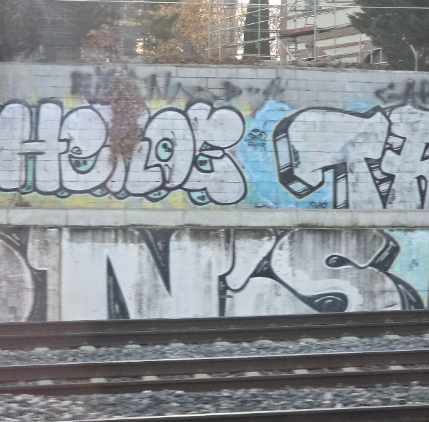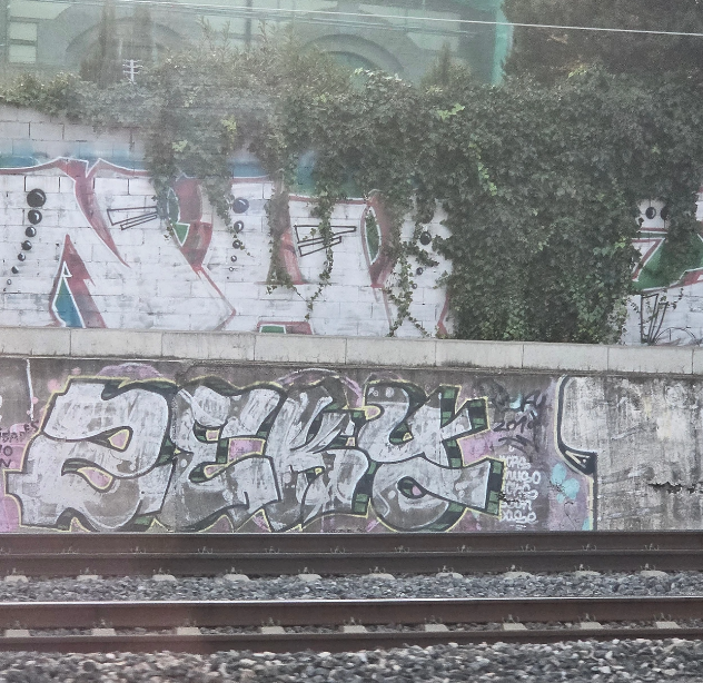 기차를 타고 왕복하다 보니 이렇게 철로 주변 벽면에 크고 화려한 글씨체들이 자주 보였다. 글씨체가 약간 풍자스럽기도 해서 처음엔 낙서인 줄 알았는데, 이것 또한 '그라피티(Graffiti)', 그중에서도 특히 '태깅(Tagging)'이나 '피스(Piece)' 스타일이라고 한다.