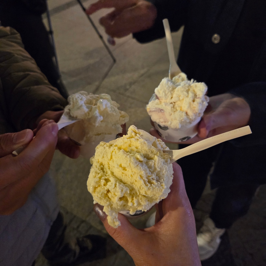 낮은 온화해도 저녁때가 되니, 좀 쌀쌀한데, 여전히 오지 않는 MZ! 한참 후에야 손에 젤라토를 3개나 들고 군중 속을 헤치며 걸어온다. 근처에 젤라토맛집이 있어서 갔는데, 줄이 너무 길어서 오래 걸렸다며, 하나씩을 건넨다. 사실은 추워서 안 먹고 싶었는데, 엄마 아빠 맛 보여 줄 거라고, 긴 줄을 서서 사 온 정성을 생각하니, 더 추웠지만 오들오들 떨며 먹어야만 했다. 아! 이제는 딱 누웠으면 좋겠다.