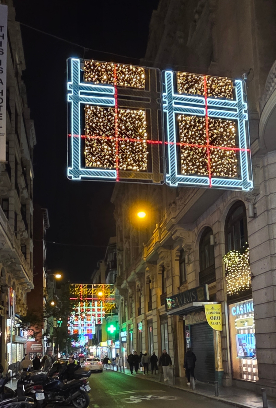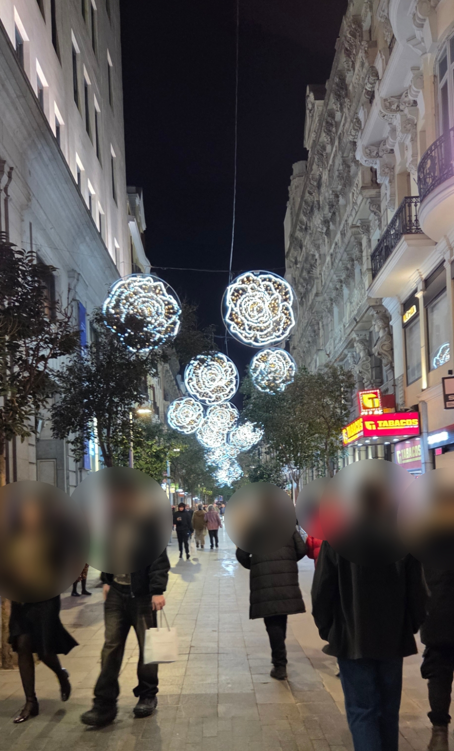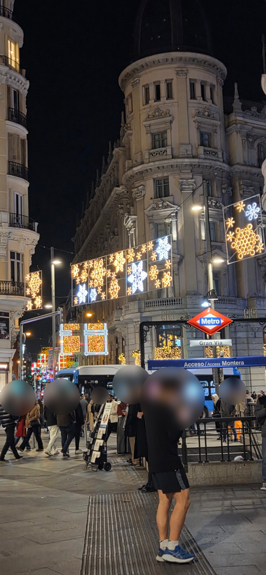 숙소로 돌아가야겠다. 걸어서 10여분 정도면 갈 수 있는데, 배도 부르고, 한기도 느껴지는지 MZ는 택시를 타자고 한다. 골목마다 사람들이 운집해 있어서, 택시나 차가 지나다닐 수가 없다. 하는 수없이 대로까지 나가야 해서 그란비아거리 쪽으로 길을 잡았다.