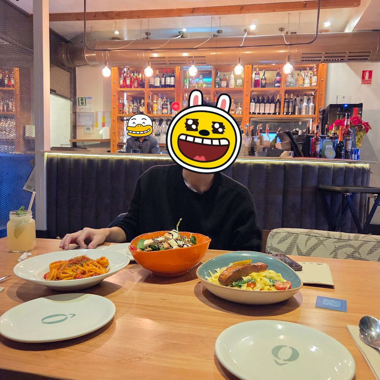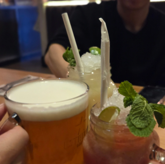 우선 상큼한 레모네이드와 생맥주를 주문한 뒤, 메뉴판을 보고 AI의 도움을 받아 메뉴 선정에 들어갔다. 음료가 빨리 나왔고, 맛도 훌륭했다. 좀 아쉬운 게 있다면 한 겨울인데, 날파리인지 초파리들인지 왱왱거리며 음료 주변을 날아다니는 것이 영 거슬렸다.