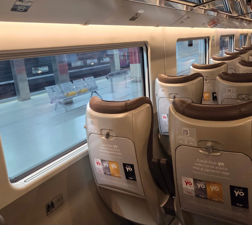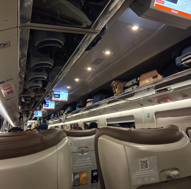 드디어, 아토차행 기차가 도착했고, 우리는 탑승해서 선반에 짐을 올렸다. 바르셀로나에서 마드리드까지 iryo기차는 2시간 30분 정도 소요된다. 고속열차라서 그런지 가격대가 좀 비싼 편이다. 가장 최신형 기차라 좌석이며 실내가 깨끗하고 쾌적하다. 티켓예매를 할 때 보니, 수화물규정이 있다. 그래서 큰 짐을 가지고 타야 하는 경우라면 자세히 보고 표를 끊는 것이 좋다.