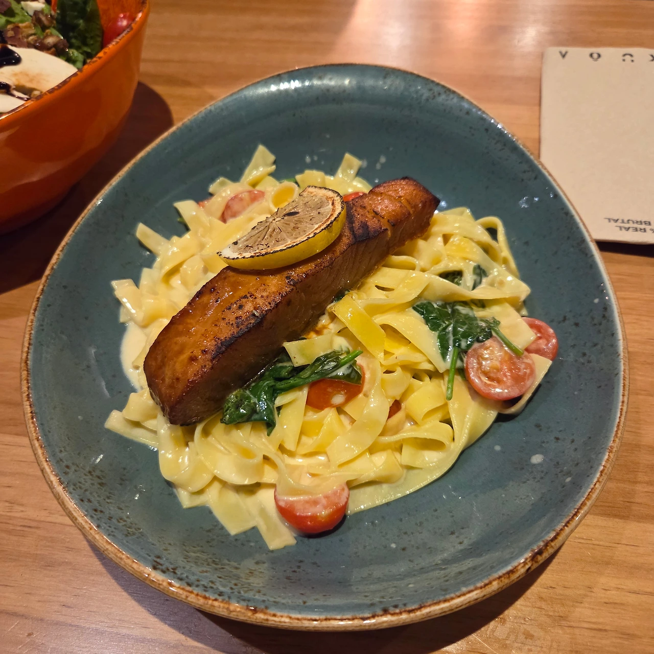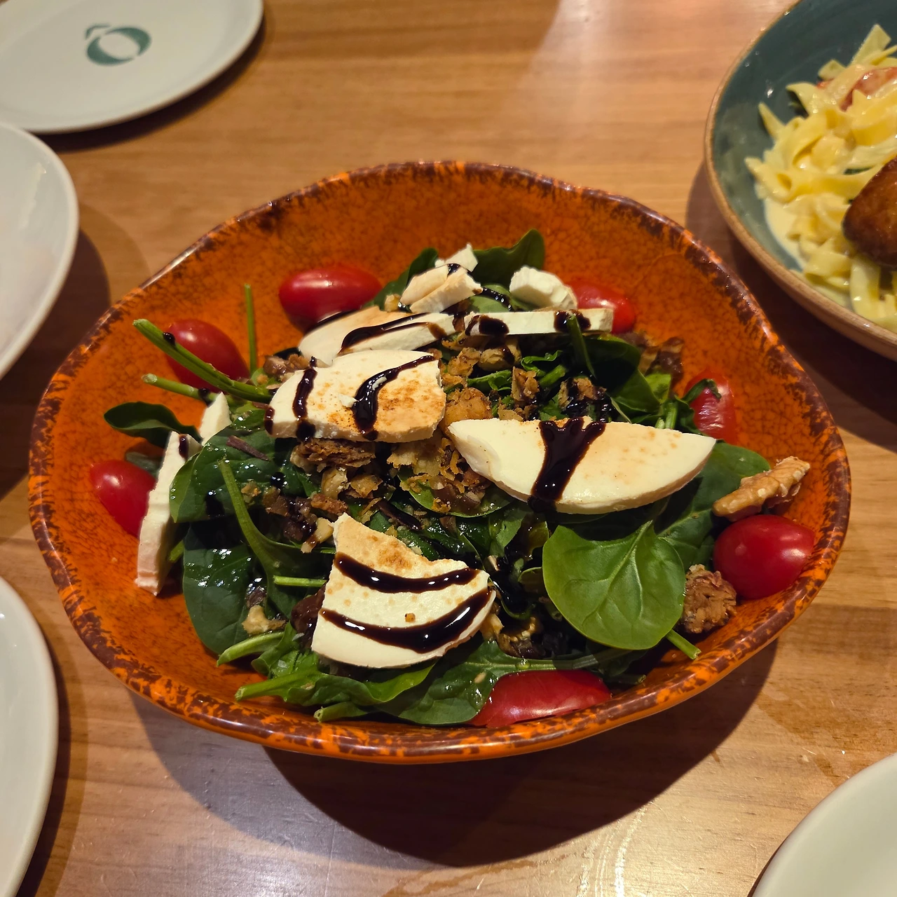 오븐에 구운 연어 파스타와 염소치즈를 올린 시금치 샐러드도 괜찮았지만, 나는 담아 주는 투박한 도자기 그릇들에 더 눈이 갔다. 접시들이 개성 있다. 음식의 색에 맞추어 잘 어우러지게 담긴 이 접시들이 정감 있다.