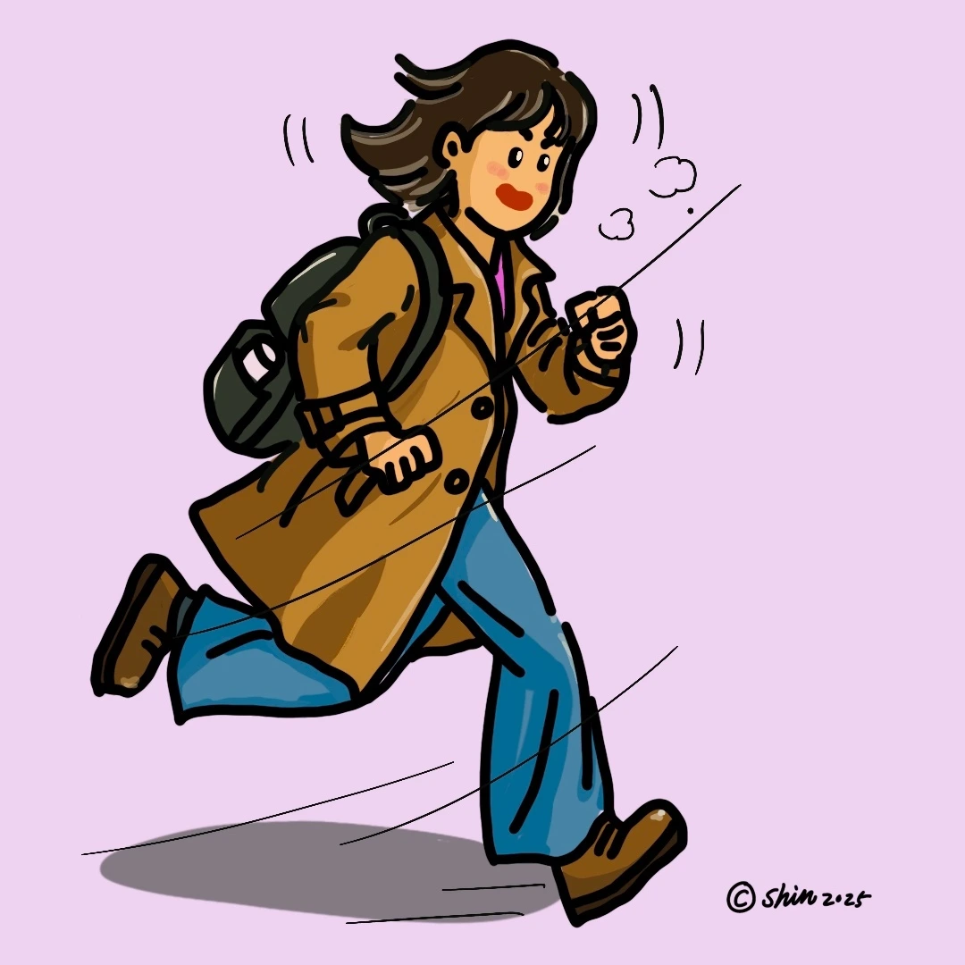 횡단보도 초록불이 15초 남았다. 안심이 되려는 찰나, 옆에 함께 달리던 젊은 아가씨가 속도를 더 낸다.