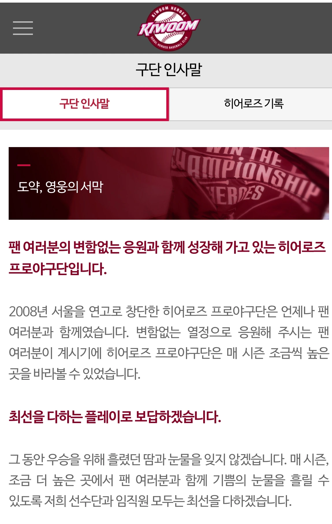 (출처:키움 히어로즈 공식 홈페이지)