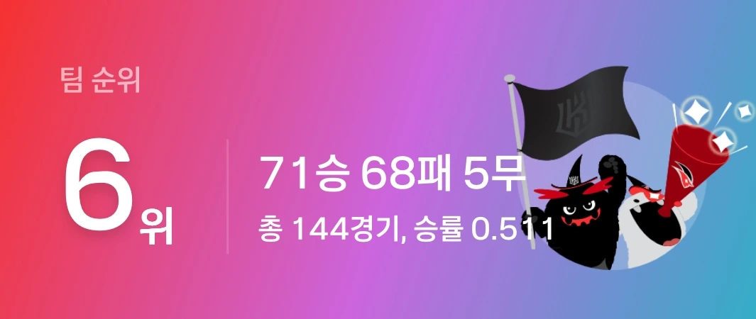 개인적으로 아쉽게 가을야구를 놓친 팀이라고 생각이 듭니다…ㅎㅎ