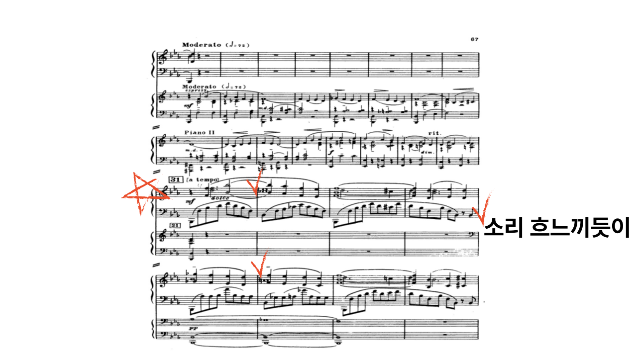특히 제가 표시한 체크 부분 앞뒤로, 임윤찬 피아니스트는 미묘한 강약의 변화를 주었어요.