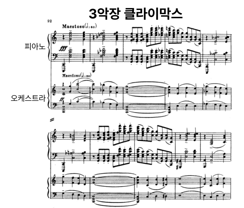음악은 점점 거세지고, 모든 에너지가 한 점으로 모이듯 피아노와 오케스트라가 서로를 향해 북 돋워주고 있죠.