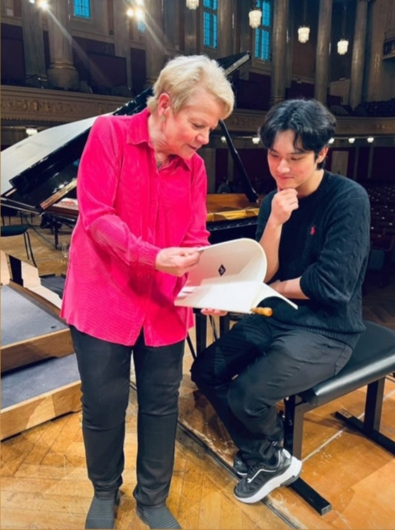 왼쪽 마린 알솝 지휘자와 오른쪽에 임윤찬 피아니스트<보석 같은 인연>