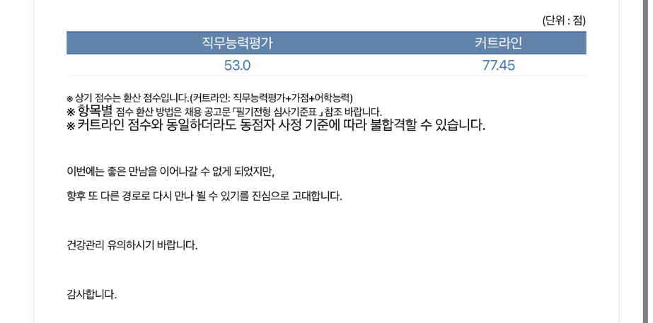 일단 결과는 아쉽게도 불합!