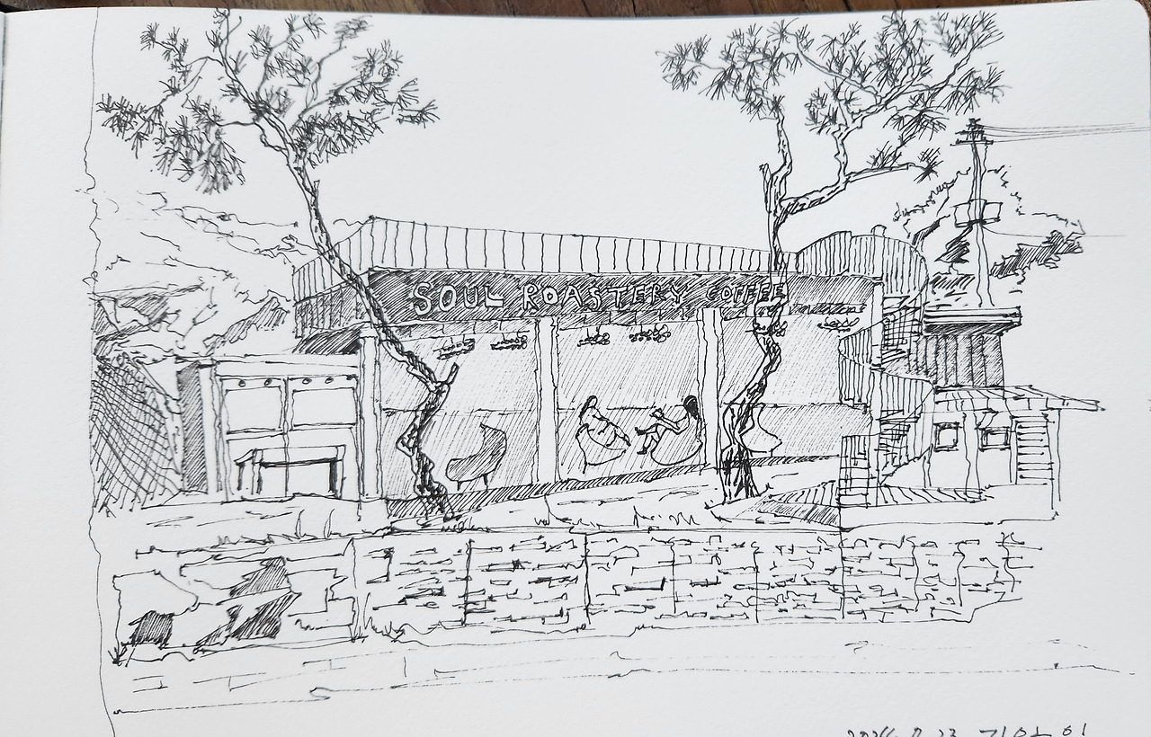 유화나 수채화는 숙련도가 높다. 초보자가 접근하기에는 거리감이 있다. 그래서 H는 어반 스케치를 선택했다. 밀도 있는 글래머보다 라이트 한 슬랜더를 택한 것이다. 글과 매치가 안되더라도 글이 살고 있는 도시나 풍광정도만 그려내도 그만이었다. 어쨌거나 그림은 슬램덩크처럼 '왼손은 거들뿐'이었으니까. 시간도 많이 투입할 순 없어서 금방 캐치되는 현장성이나 즉흥성들이 중요했다. 어반 스케치는 그런 점에서 여러모로 제격이다.